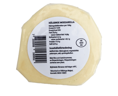 En härligt god torr mozzarella av mjölk från gårdar i Hälsingland. Ät som den är, i sallad eller perfekt att riva över pizza eller nachos. Tillverkad av Hudik Deli AB för Dellenmejeriet AB