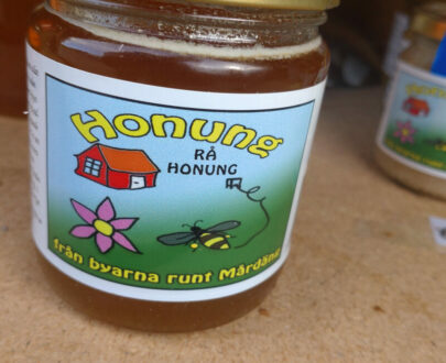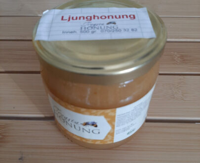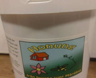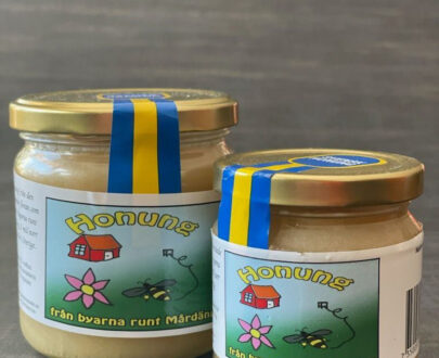 Honung från bigårdar ca 1 mil norr om Gävle. Fast i konsistensen. 500g glasburkar packade i kartong med 12 st burkar.