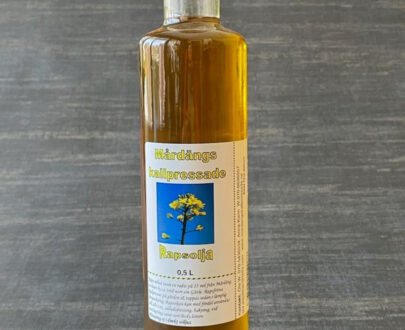 En lite snyggare förpackning med kallpressad rapsolja! Lämplig som present med mera. Dock finns inget säkerhets sigill, där av lämplig för deli, å liknande butiker.