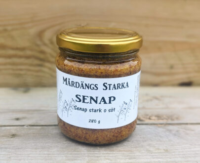 Grovkorig senap, sötad med honung och socker. Ingen streckkod och ingen locksäkring.