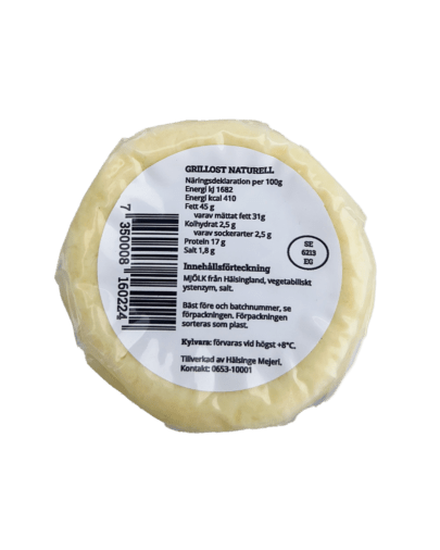 Extra god stek och grillost av mjölk från gårdar i Hälsingland . Tillverkad av Hudik Deli AB för Dellenmejeriet AB