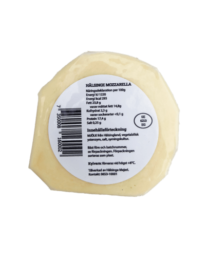 En härligt god torr mozzarella av mjölk från gårdar i Hälsingland. Ät som den är, i sallad eller perfekt att riva över pizza eller nachos. Tillverkad av Hudik Deli AB för Dellenmejeriet AB