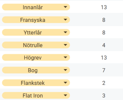 Vi köper enbart in svenska djur främst från Norduppland, men även Gästrikland och södra Hälsingland. Vi har alltså en helhet från producent till konsument och där av en optimal kontroll av spårbarhet och kylkedja. Sedan 2021 är vi även KRAV-certifierade.