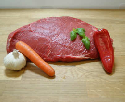 Grytbitar av lokalproducerad mörhängd Fransyska, Ytterlår och Bog.