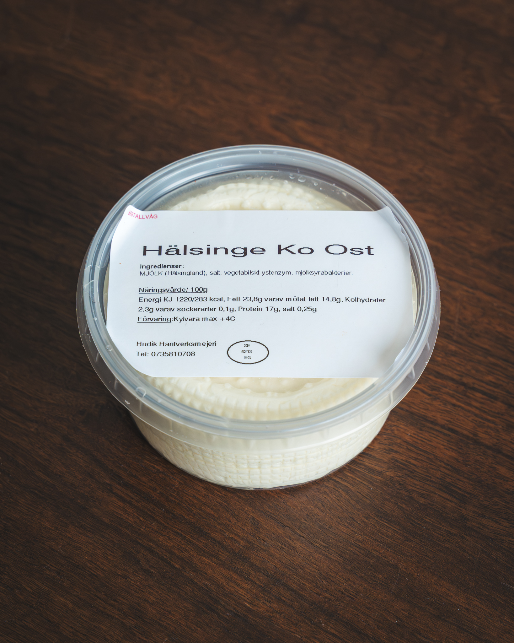 En mjuk och väldigt len och krämig ost, gjort på färsk komjölk från gårdarna i Hälsingland Den balanserade smaken gör osten perfekt för sallad, smörgås eller att äta som den är.